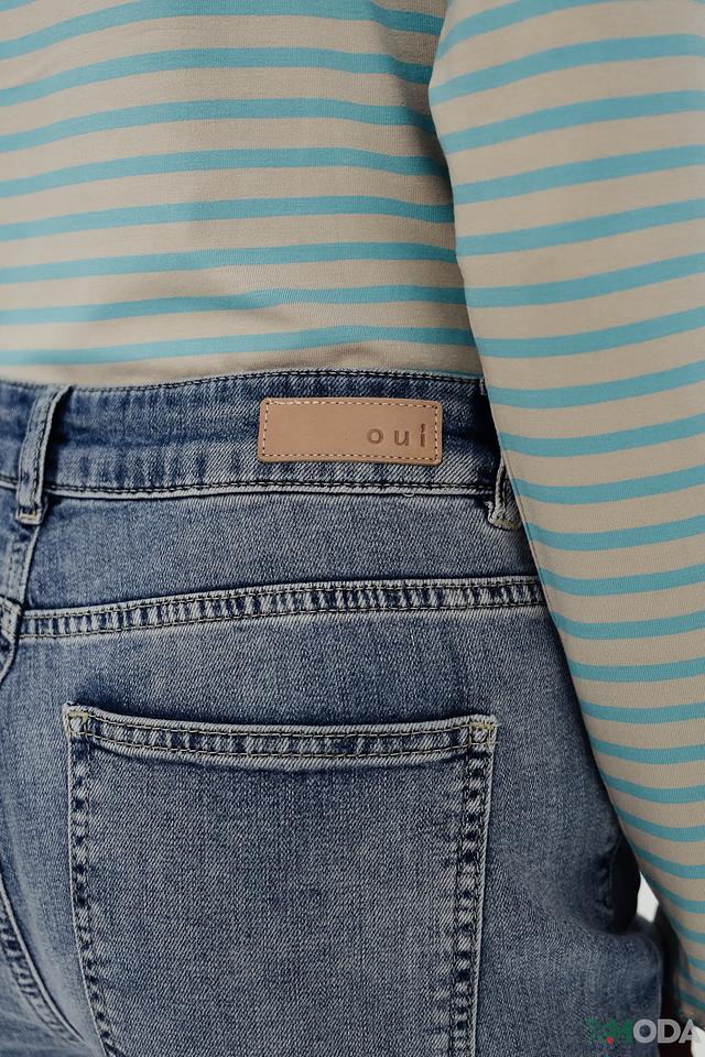 Женские джинсы Oui голубого цвета с высокой посадкой и прямым кроем. Модель выполнена в стиле casual с эффектом потертости и имеет классическую застежку на пуговицу. Состав: хлопок 98%, эластан 2%. Состав: хлопок 98%, эластан 2%