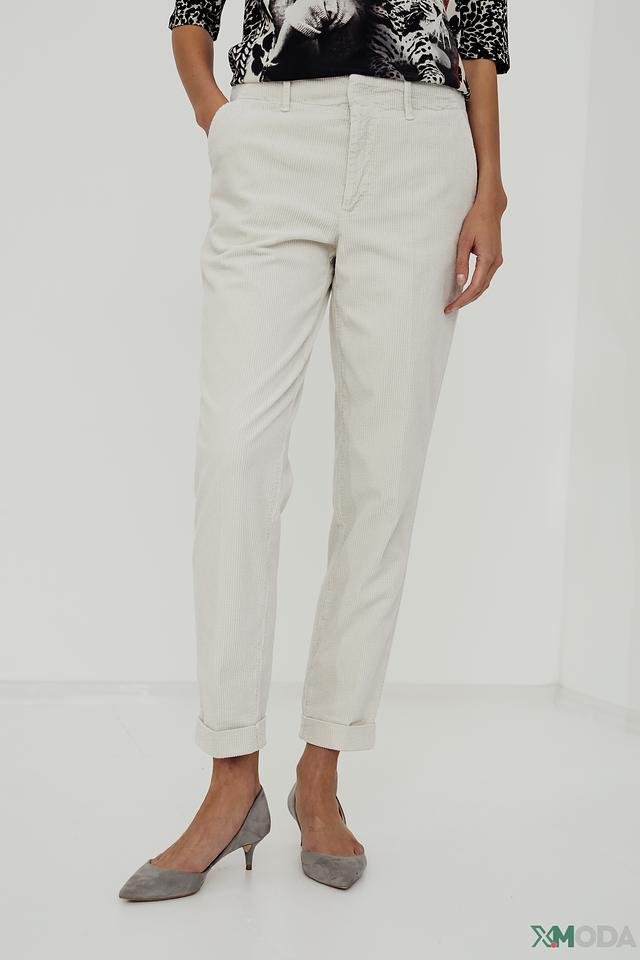 Брюки оснащены боковыми карманами и задними карманами с клапанами. Застежка на молнию и пуговицу. Состав: 98% хлопок, 2% эластан.