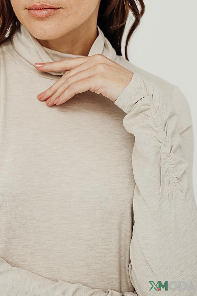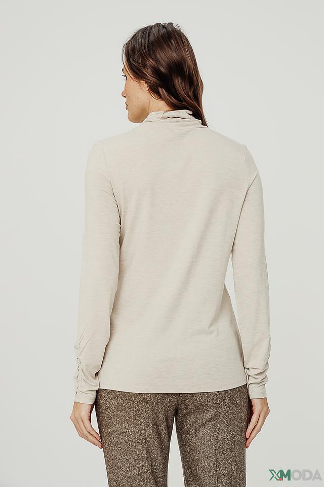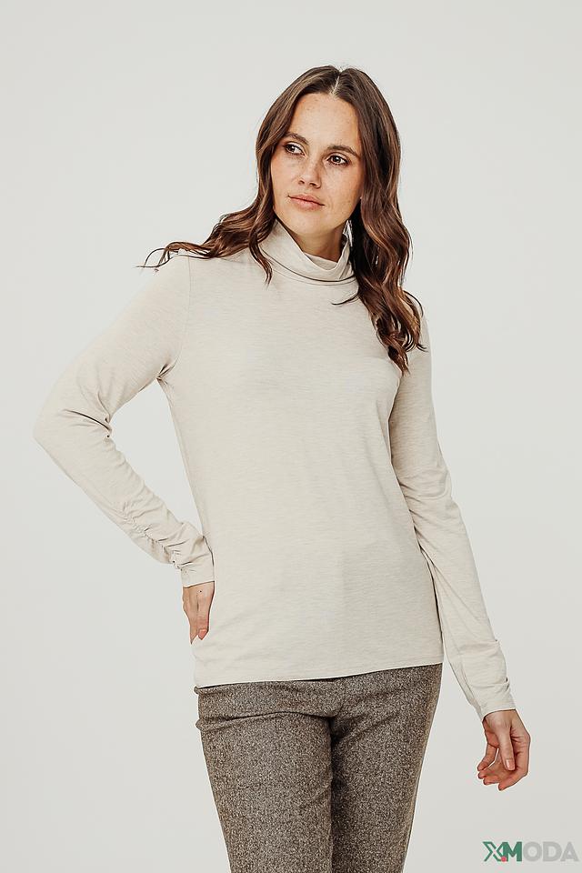 Водолазка имеет классический крой, который подходит для любого типа фигуры. Длинные рукава и высокий воротник-стойка создают элегантный и утонченный образ. Нежный бежевый цвет легко сочетается с другими элементами одежды, позволяя создавать разнообразные стильные комплекты.
