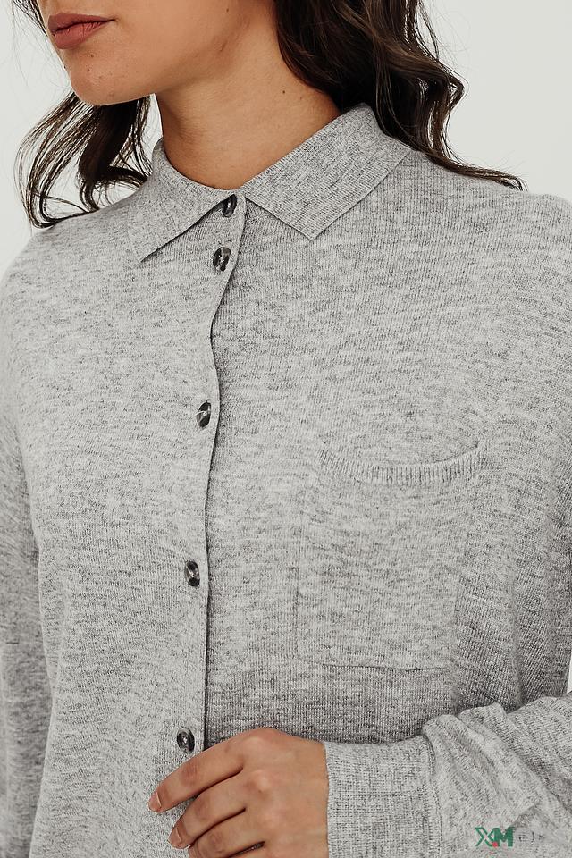 Жакет застегивается на пуговицы, имеет длинные рукава и воротник. На груди расположен накладной карман. Изготовлен из сочетания вискозы, полиамида и шерсти, что обеспечивает комфорт и удобство в носке.