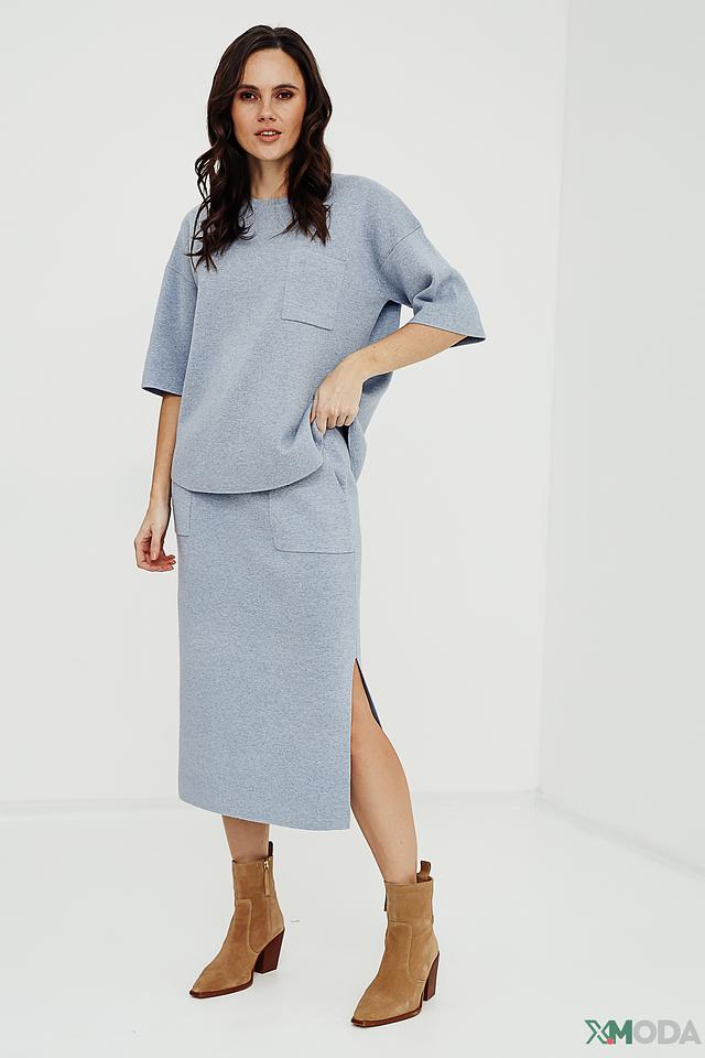 Юбка Oui голубая с разрезом