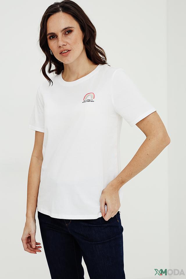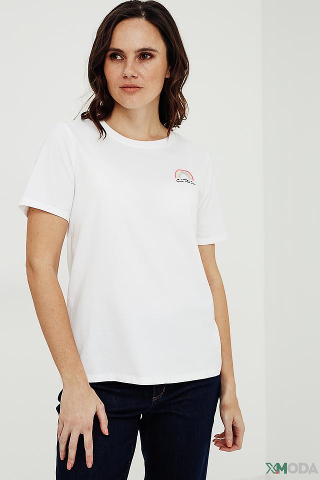 Белая футболка от Oui с ярким принтом радуги. Изготовлена из 100% хлопка, обеспечивая комфорт и воздухопроницаемость. Стильный и позитивный образ для повседневной носки. Состав: хлопок 100%
