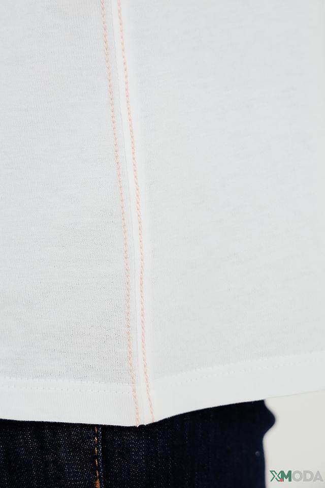 Футболка имеет классический прямой крой, который подходит для любой фигуры. Короткие рукава и круглый вырез горловины обеспечивают свободу движений и комфорт в жаркую погоду. Эта футболка идеально сочетается с джинсами, шортами или юбками, создавая стильный и непринужденный образ.