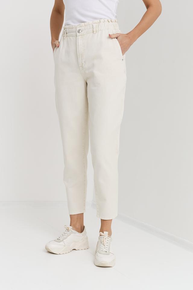 Женские джинсы Oui кремового цвета с высокой посадкой и эластичным поясом. Модель выполнена в свободном крое с укороченными штанинами и оформлена функциональными карманами. Состав: хлопок 100%