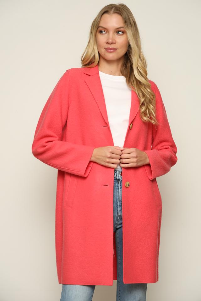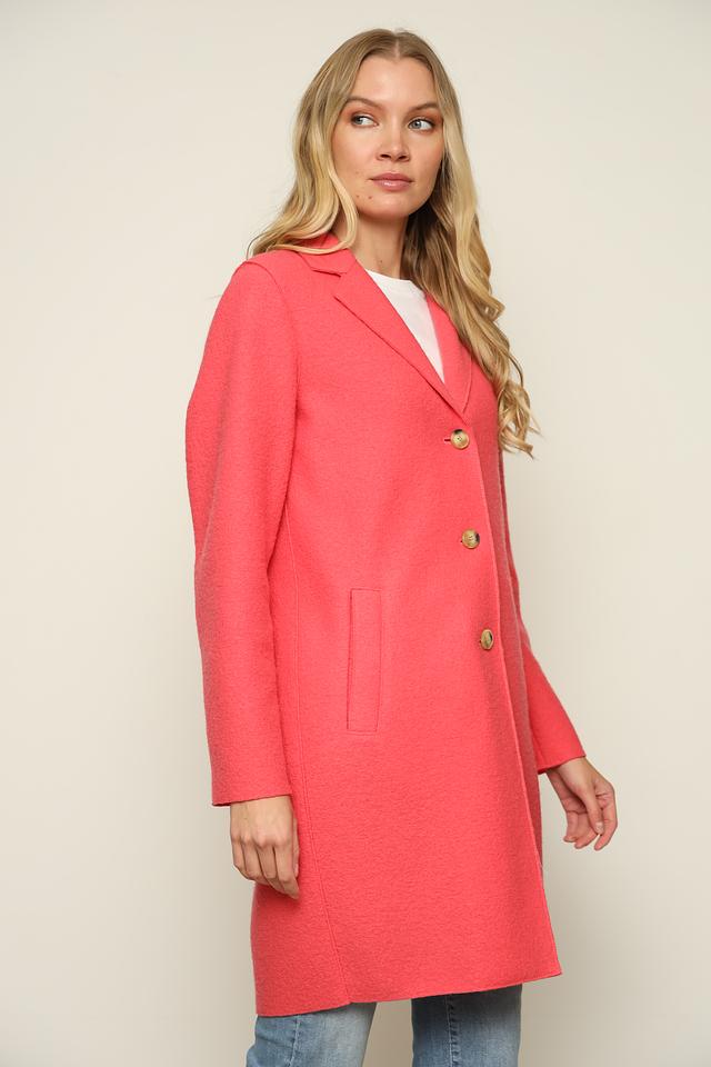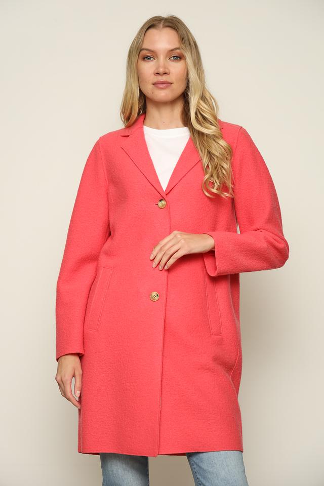 Пальто имеет отложной воротник и боковые карманы, которые делают его функциональным и практичным. Этот вариант идеально подойдет для повседневной носки, а также для особых случаев. Коралловый оттенок придаст вашему образу свежесть и яркость.