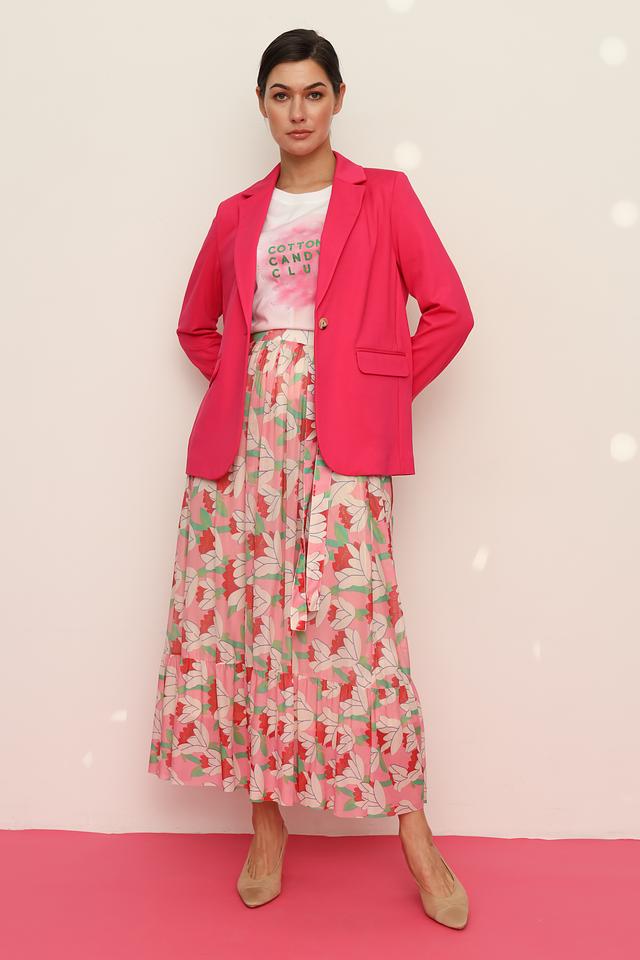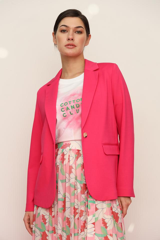 Этот малиновый жакет от Oui станет ярким акцентом вашего гардероба. Классический крой и приталенный силуэт выгодно подчеркнут фигуру, а однобортная застёжка на пуговицу добавляет элегантности.