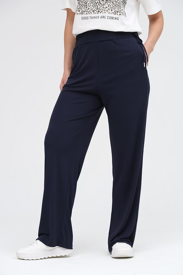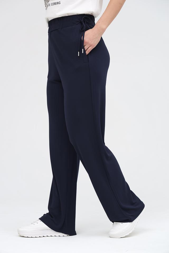 Темно-синие брюки от Oui прямого кроя, выполнены из мягкой вискозы. Модель с эластичным поясом и боковыми карманами, обеспечивающими комфорт и практичность. Состав: вискоза 100%