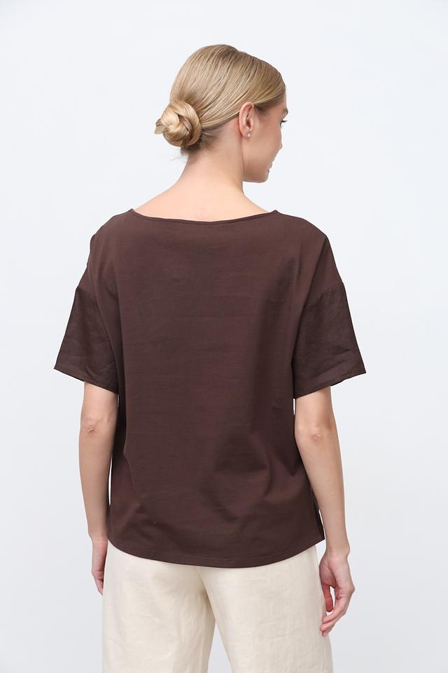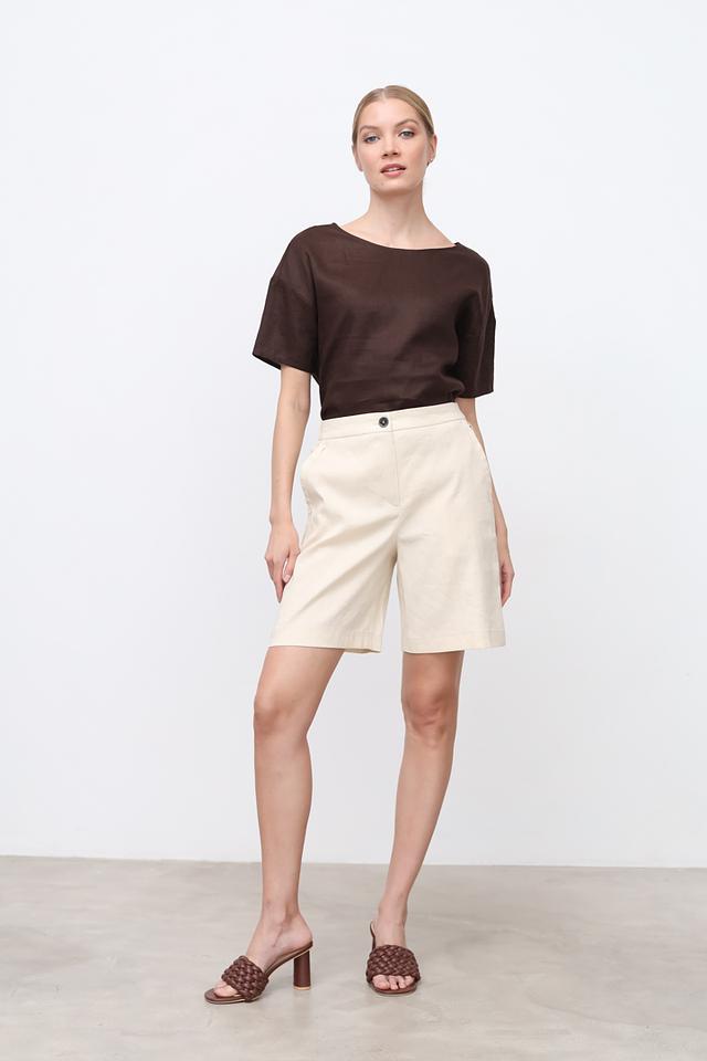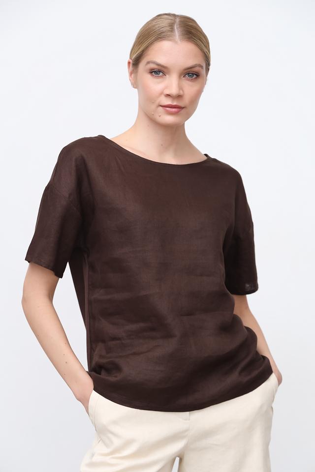 Коричневая блуза Oui из 100% льна – это стильное и комфортное решение для создания повседневных образов. Прямой крой и короткие рукава обеспечивают свободу движений, а натуральный лен дарит ощущение прохлады в жаркую погоду. Состав: лен 100%
