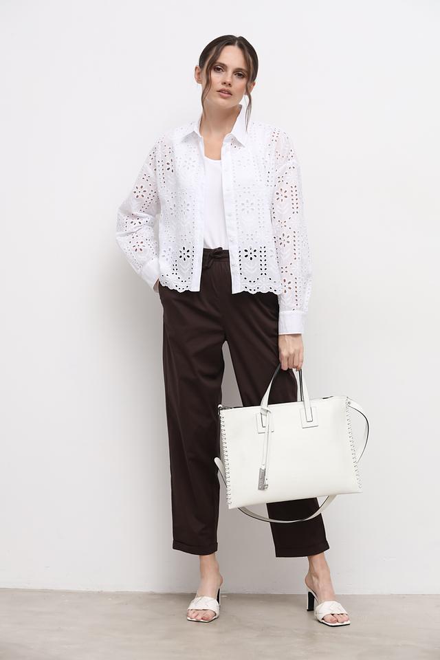 Этот белый топ от бренда Oui станет незаменимой частью вашего гардероба. Он выполнен из высококачественного хлопка с добавлением эластана, что обеспечивает приятные тактильные ощущения и хорошую посадку по фигуре.