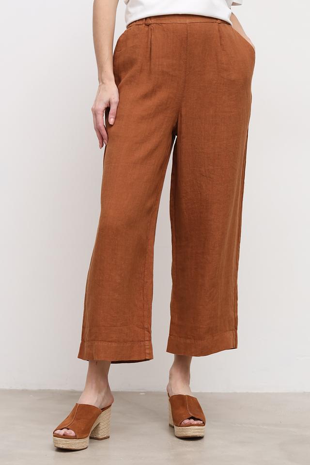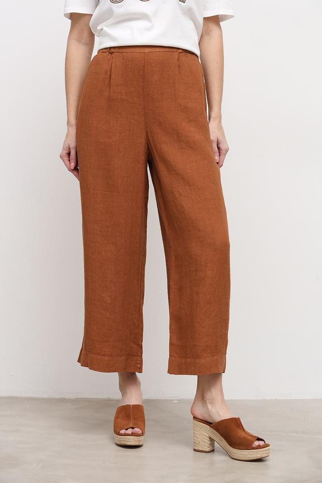 Женские брюки Oui цвета терракоты из 100% льна — это стильное и комфортное решение для летнего гардероба. Прямой крой и эластичный пояс обеспечивают удобную посадку, а натуральный материал дарит ощущение прохлады. Состав: лен 100%