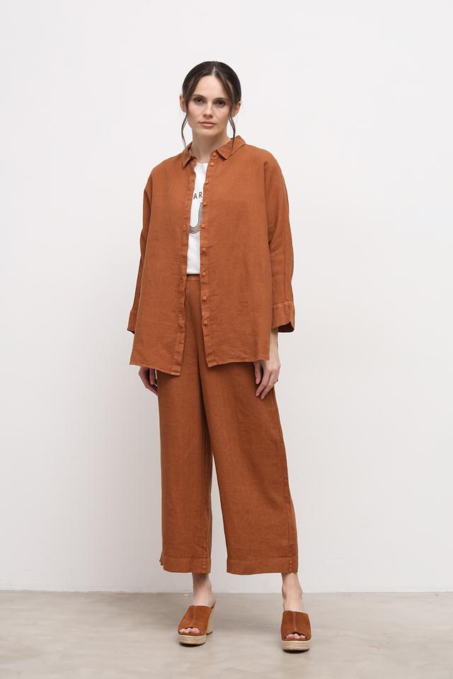 Цвет терракоты придает брюкам особый шарм и позволяет легко сочетать их с различными топами и обувью. Брюки идеально подойдут для повседневной носки, прогулок по городу или отдыха на природе. Они прекрасно сочетаются с рубашками, футболками и легкими жакетами.