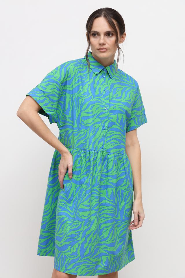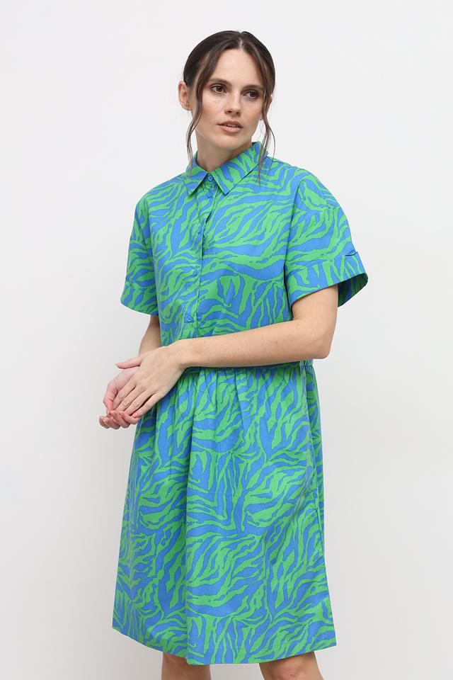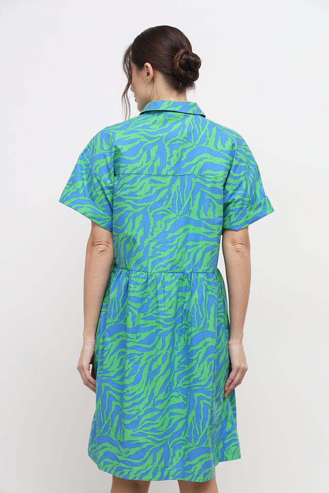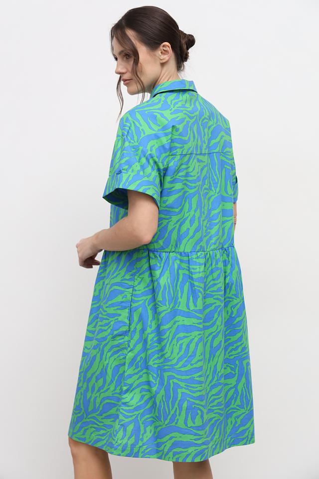 Это стильное платье от бренда Oui станет отличным дополнением к вашему гардеробу. Платье выполнено в яркой зелёно-голубой гамме с оригинальным принтом, напоминающим полоски зебры.