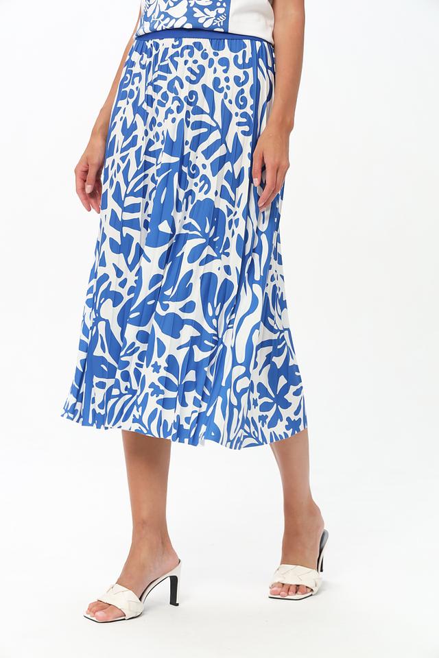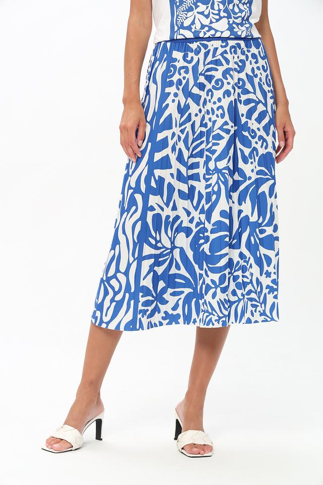 Юбка от бренда Oui синего цвета с ярким цветочным принтом – идеальный выбор для создания стильного и женственного образа. Модель выполнена из лёгкой ткани с эластаном, обеспечивающей комфорт и свободу движений. Состав: полиэстер 92%, эластан 8%