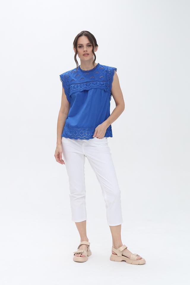 Блуза Oui с вышивкой коклюшками синяя