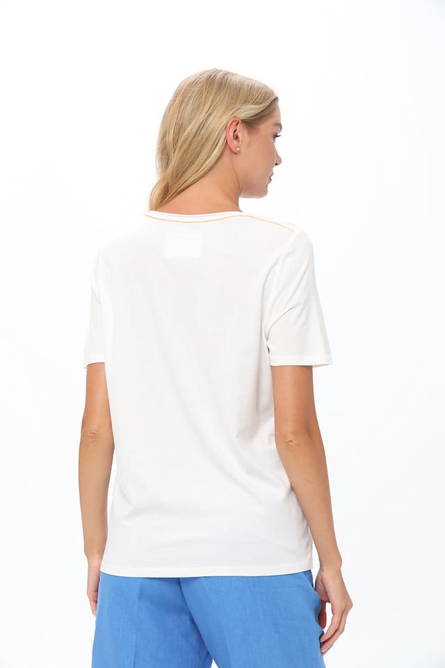 Белая футболка от Oui с оригинальным принтом в голубых тонах. Изготовлена из мягкого хлопка с модалом, обеспечивающего комфорт и приятные ощущения при носке. Стильный и удобный вариант для повседневного образа. Состав: хлопок 50%, модал 50%