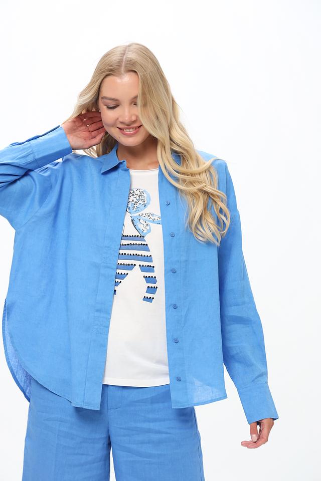 Рубашка Oui из льна голубая