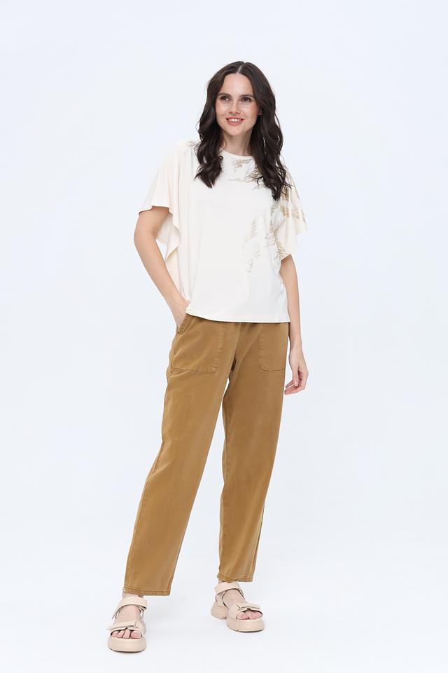 Брюки имеют свободный крой, который обеспечивает комфорт при носке. Эластичный пояс с кулиской позволяет регулировать посадку по фигуре. Боковые карманы добавляют функциональности.