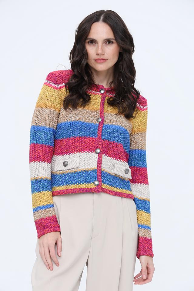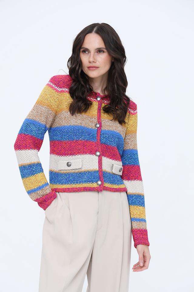 Этот яркий жакет от Oui станет отличным дополнением к вашему гардеробу. Модель выполнена в полосатом дизайне, сочетающем в себе множество цветов, что делает ее уникальной и привлекательной.