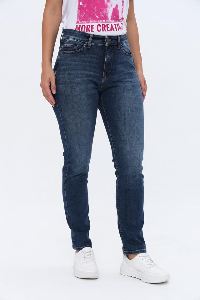 Джинсы имеют прямой крой, который подчеркивает фигуру, но при этом не сковывает движений. Состав ткани включает 95% хлопок, 3% полиэстер и 2% эластан, что обеспечивает комфорт в носке и хорошую посадку по фигуре. Эластан добавляет эластичности, позволяя джинсам адаптироваться к вашим движениям.