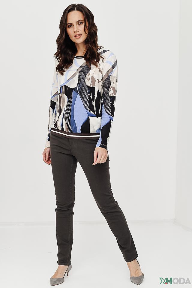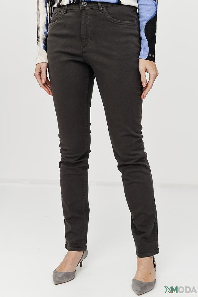 Застёжка на молнию и пуговицу, пять карманов (три спереди и два сзади). Декоративная отстрочка на задних карманах. Состав: 73% хлопок, 24% вискоза, 3% эластан.