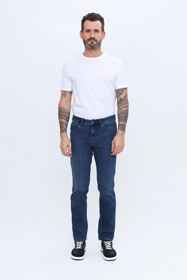 Джинсы имеют прямой крой, обеспечивающий комфортную посадку по фигуре. Ткань состоит из хлопка (77%), полиэстера (21%) и эластана (2%), что гарантирует удобство в носке, износостойкость и небольшую эластичность.