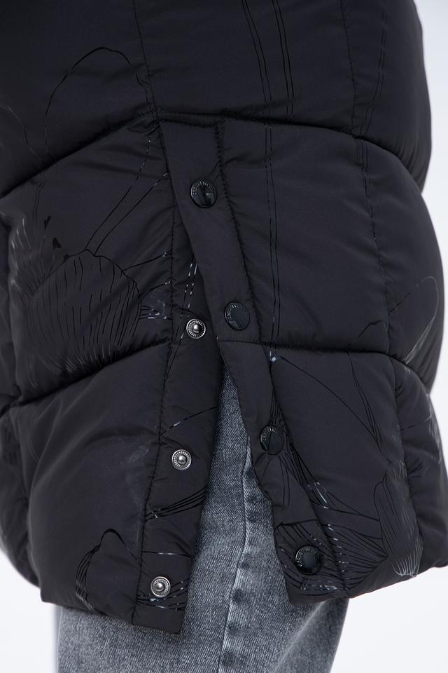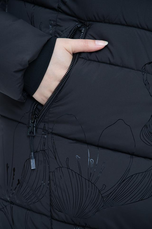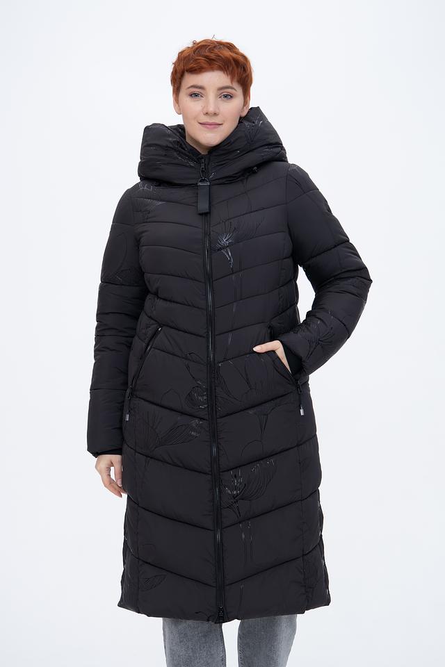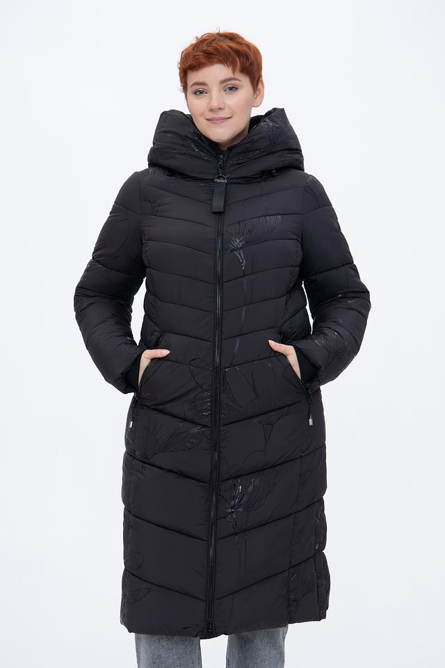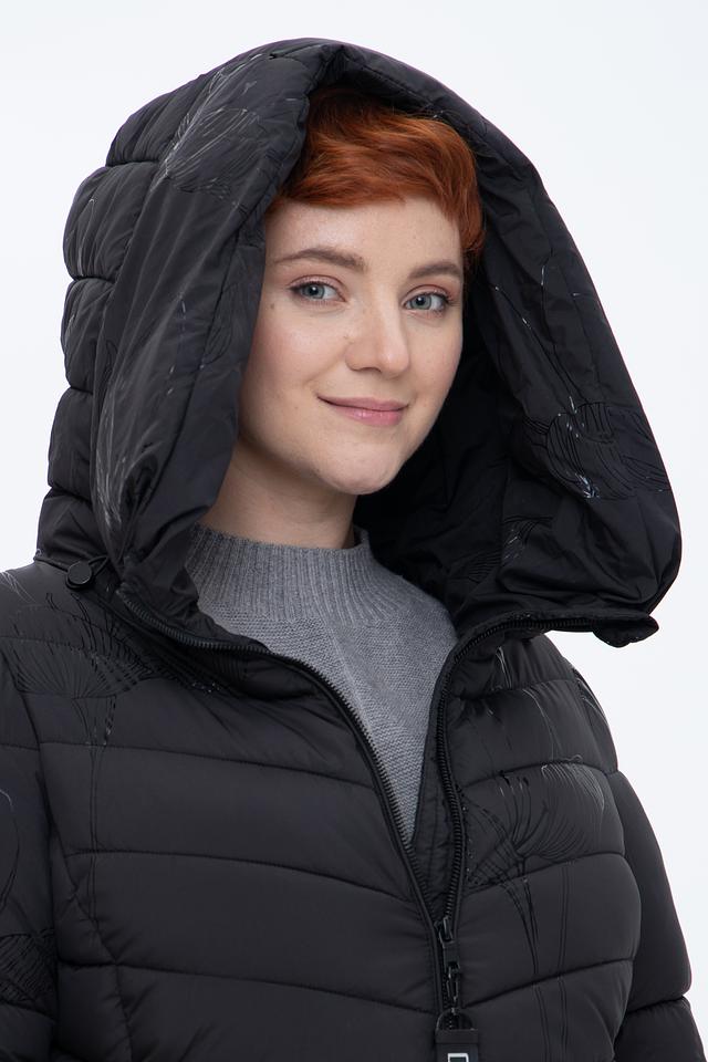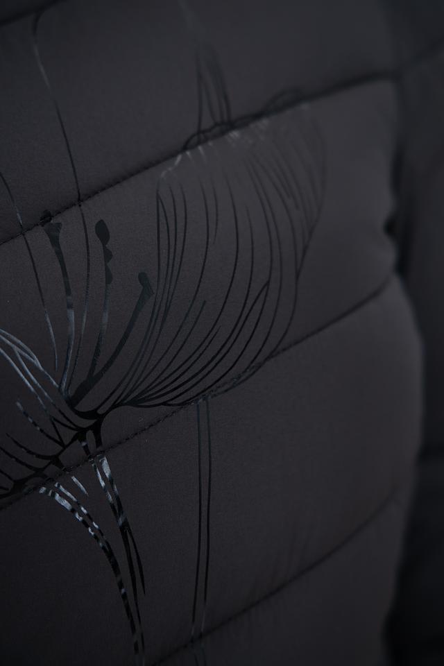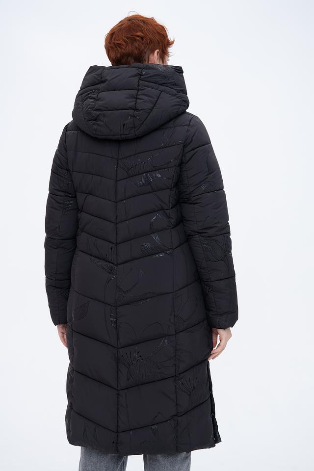 Чёрное стеганое пальто District – это стильное и теплое решение для прохладной погоды. Модель имеет удобный капюшон и застегивается на молнию, а деликатный цветочный принт добавляет изысканности образу. Состав: полиэстер 100%
