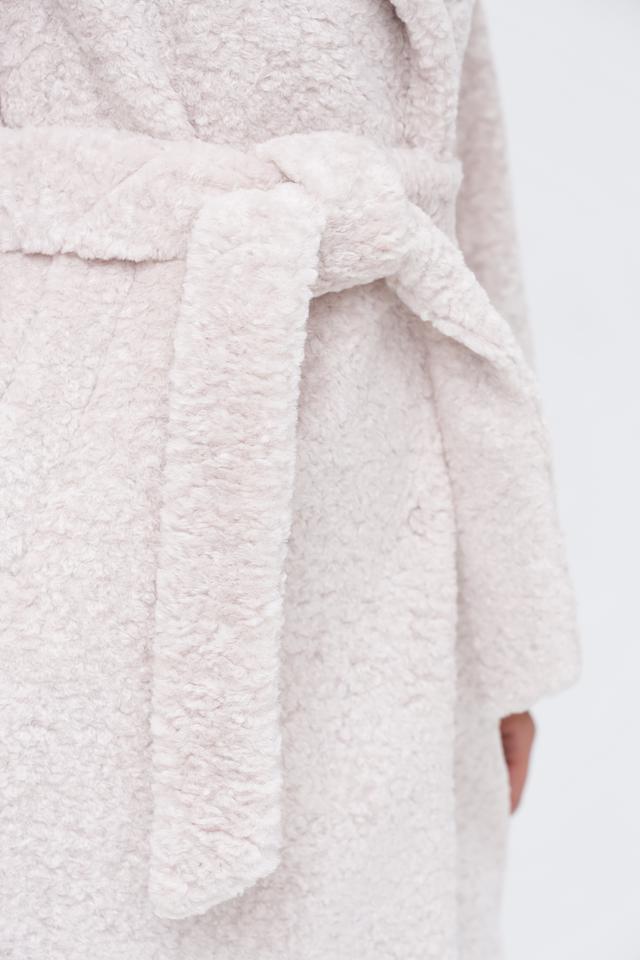 Ткань пальто мягкая и приятная на ощупь, напоминающая искусственный мех. Состав подкладки включает вискозу, шерсть, полиэстер и ацетат, что обеспечивает комфорт и удобство в носке. Данное пальто идеально подойдет для создания повседневных и вечерних образов.