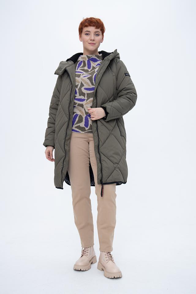 Особенностью данного пальто является его подкладка с ярким принтом, которая добавляет образу индивидуальности. Пальто изготовлено из 100% полиэстера, что обеспечивает легкость и простоту в уходе.
