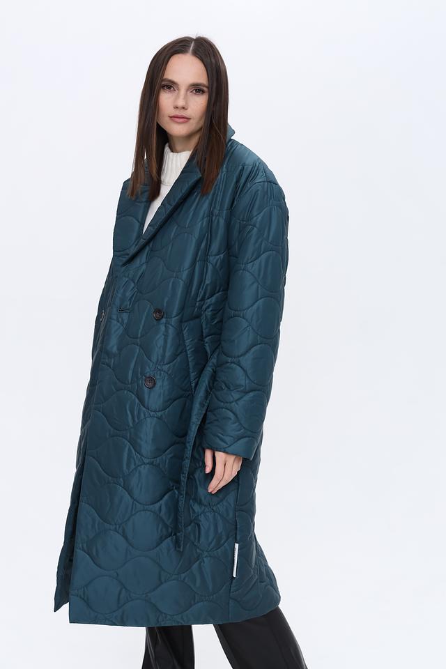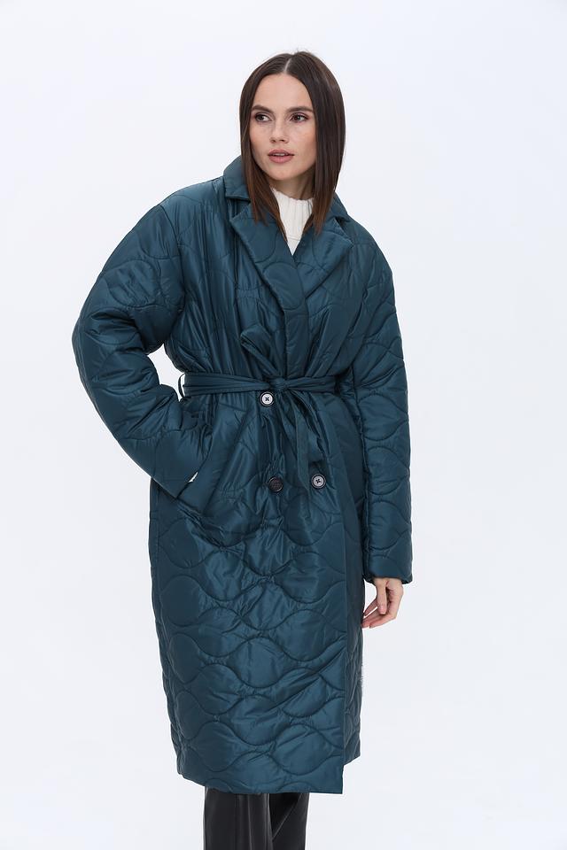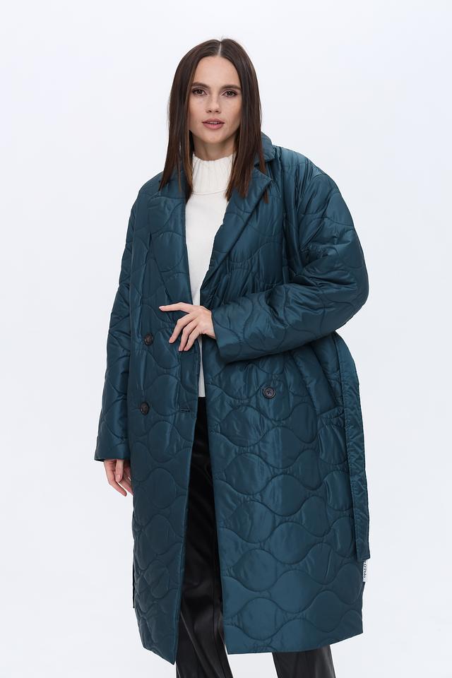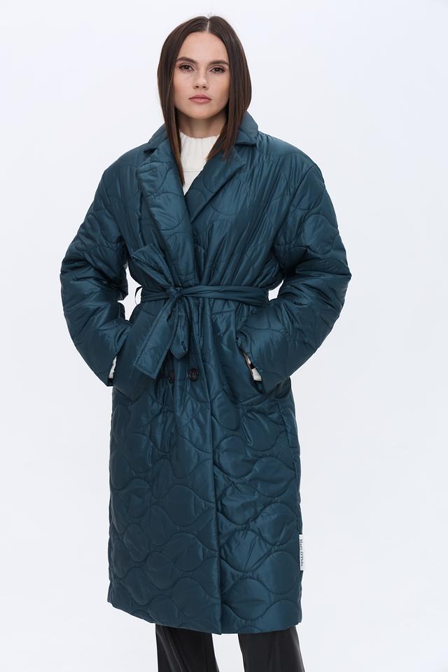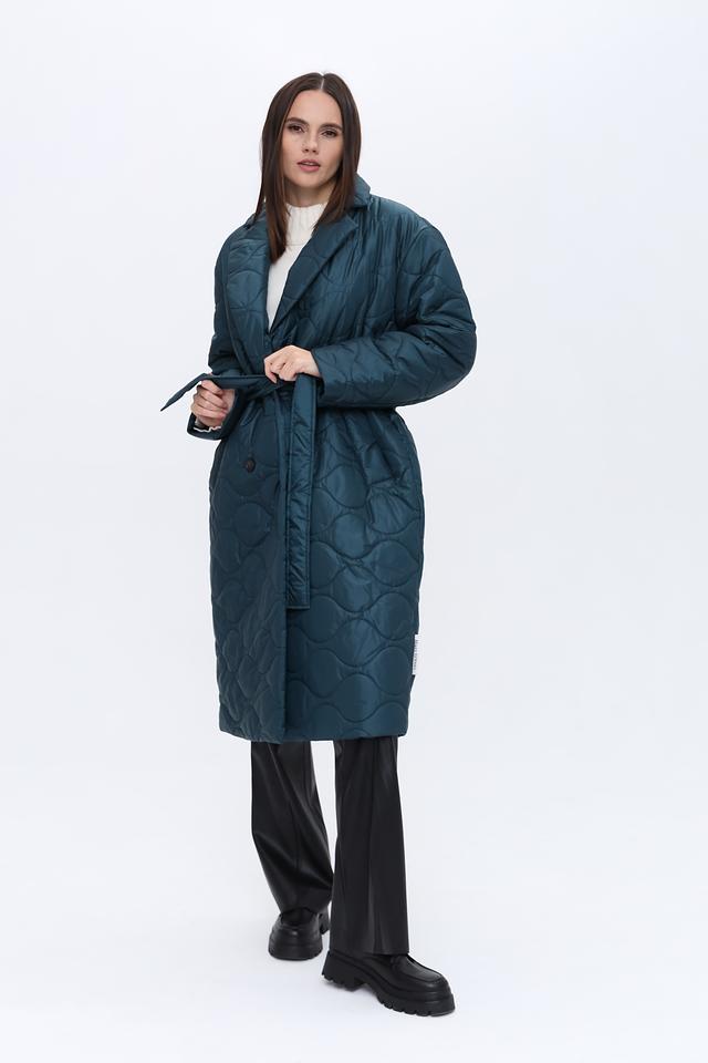 Модель имеет прямой крой, длину до середины икры и удобный пояс, который подчеркивает талию и создает женственный силуэт. Застежка на пуговицы позволяет регулировать степень утепления и создавать различные образы.