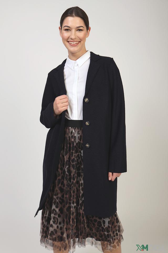 Пальто выполнено из высококачественной шерсти (52%) с добавлением вискозы (48%), что обеспечивает комфорт и тепло. Приталенный силуэт подчеркивает фигуру, а застёжка на пуговицы позволяет регулировать степень утепления.