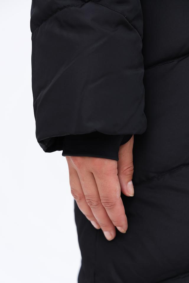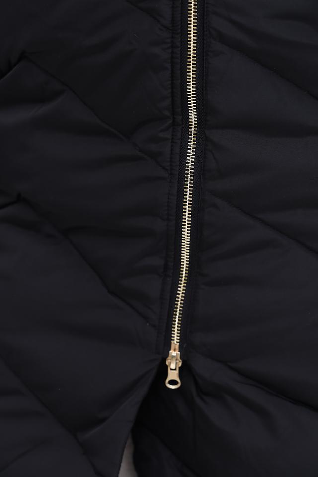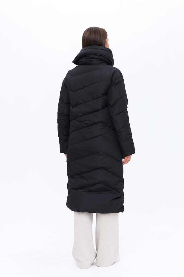 Пальто имеет стеганую фактуру, которая придает ему современный вид. Высокий воротник-стойка защищает от ветра и холода, а застежка-молния позволяет регулировать степень теплоизоляции.