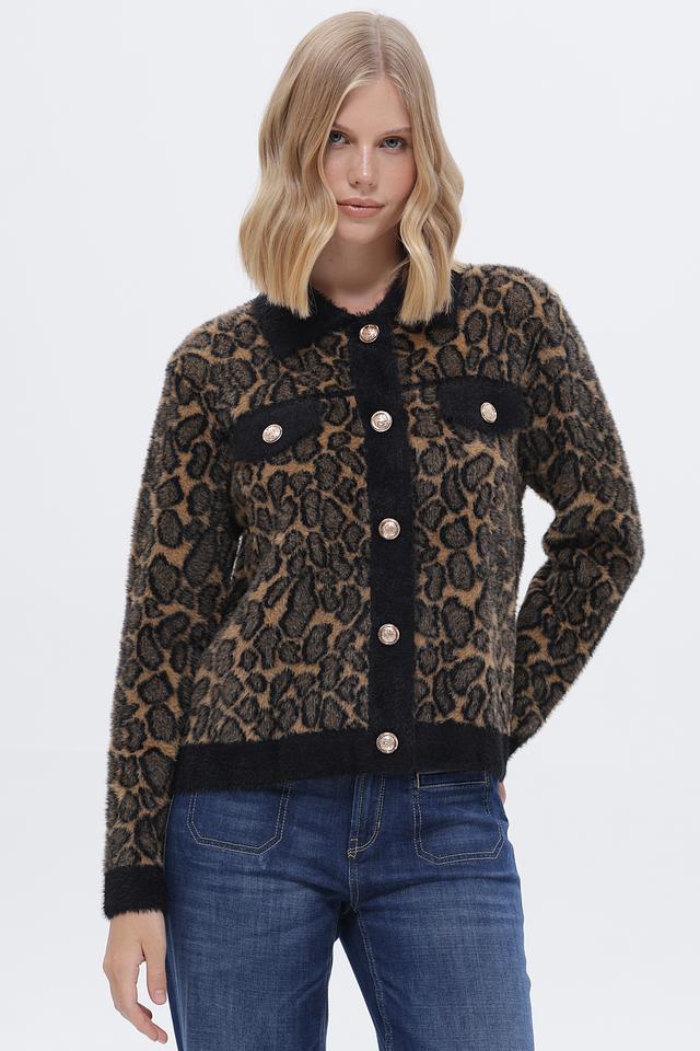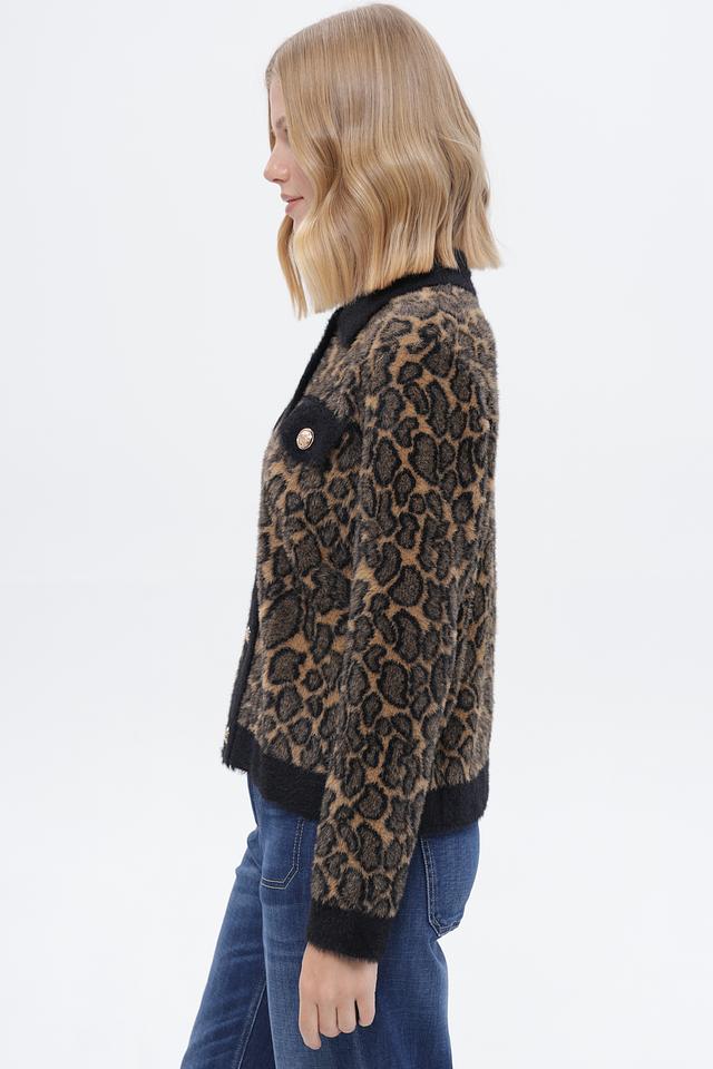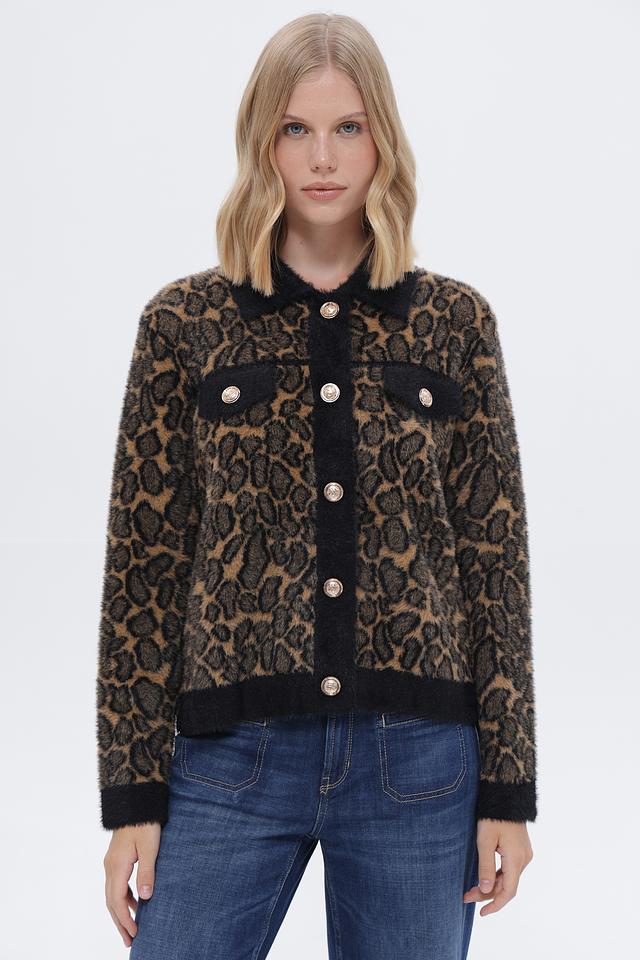 Этот жакет от Passioni станет ярким акцентом вашего гардероба. Модель выполнена в оригинальном леопардовом принте, сочетающем в себе оттенки коричневого и чёрного.