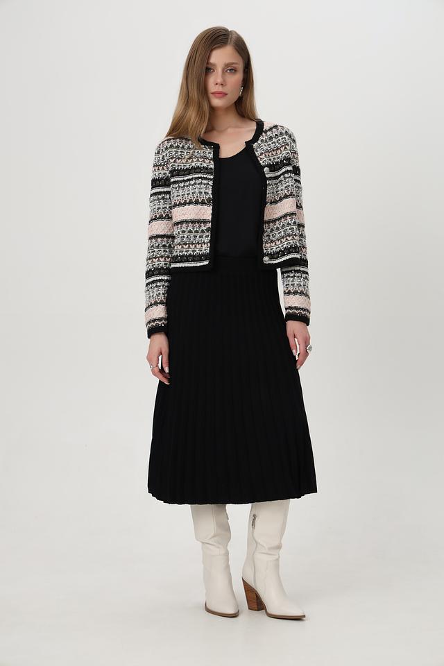Чёрная юбка Passioni плиссе – элегантная модель длиной миди, выполненная из вискозы с добавлением полиамида. Плиссированная текстура придает юбке изысканный вид и обеспечивает комфорт в носке. Состав: вискоза 80%, полиамид 20%