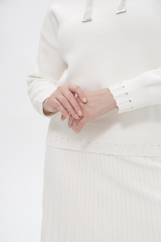 Белый джемпер Passioni с капюшоном и декоративными шнурками – стильное и комфортное решение для повседневного образа. Изготовлен из мягкого трикотажа с добавлением вискозы и полиэстера. Состав: вискоза 65%, полиамид 20%, полиэстер 15%