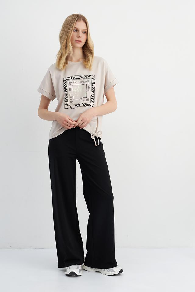 Представляем стильные брюки от бренда Passioni. Эта модель выполнена в классическом чёрном цвете и имеет прямой, слегка расклешенный крой – палаццо. Брюки отличаются завышенной талией и эластичным поясом с кулиской, что обеспечивает комфортную посадку по фигуре.