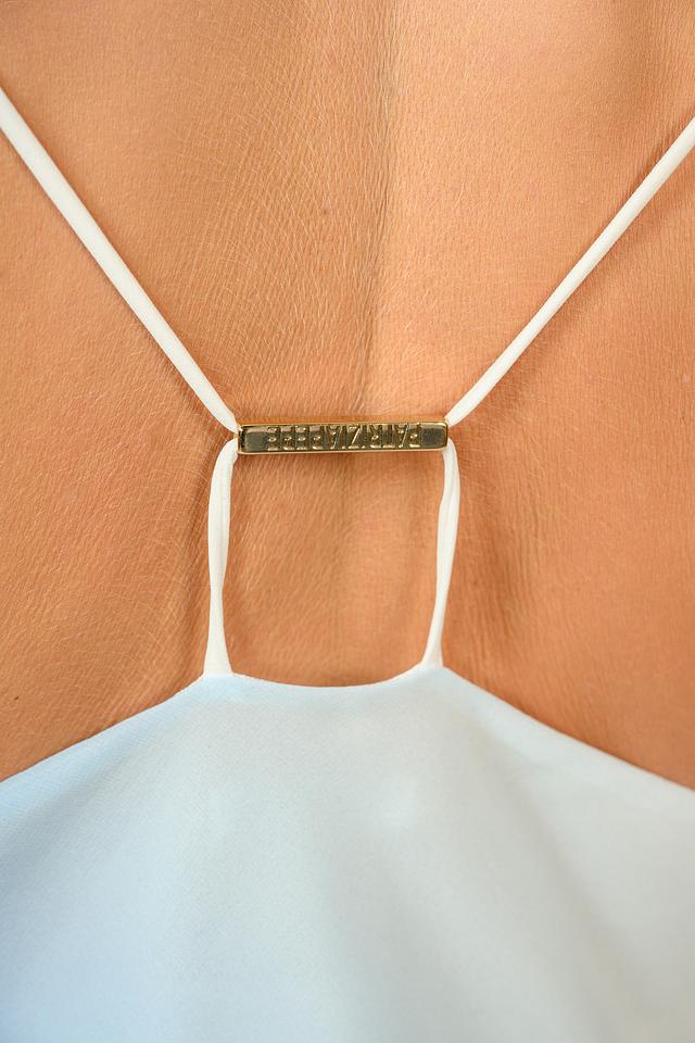 На бретелях присутствует фирменная металлическая фурнитура с логотипом бренда Patrizia Pepe.