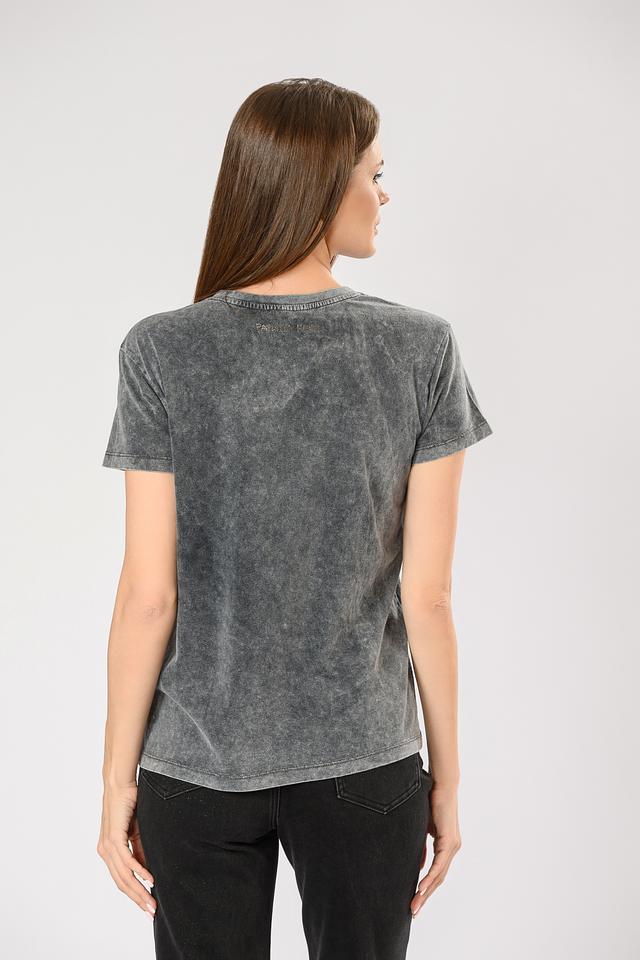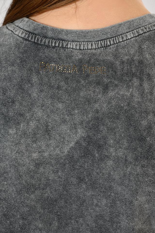 На спине футболки присутствует вышитый логотип бренда Patrizia Pepe, что подчеркивает ее аутентичность и высокое качество. Текстура ткани имеет эффект "вареного" денима, что добавляет ей винтажный вид и уникальность.