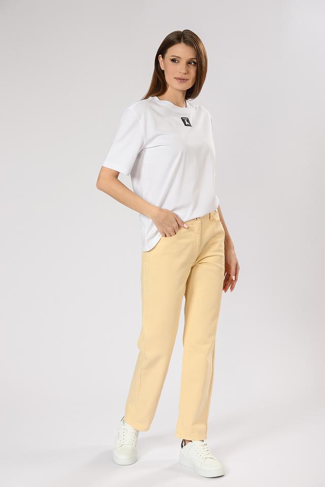 Классический крой с короткими рукавами и круглым вырезом горловины делает эту футболку универсальной и подходящей для любого типа фигуры. Она отлично сочетается с джинсами, брюками, юбками и шортами, позволяя создавать разнообразные стильные комплекты.