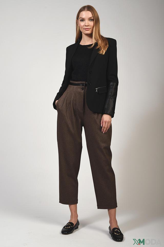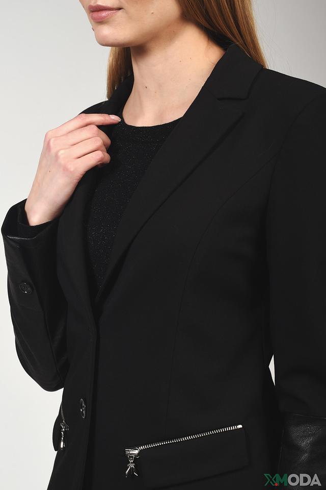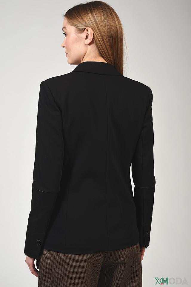 Особенностью данной модели являются кожаные рукава, которые добавляют жакету оригинальности и изысканности. Застёжка на пуговицы обеспечивает удобство ношения, а боковые карманы позволяют хранить необходимые мелочи.