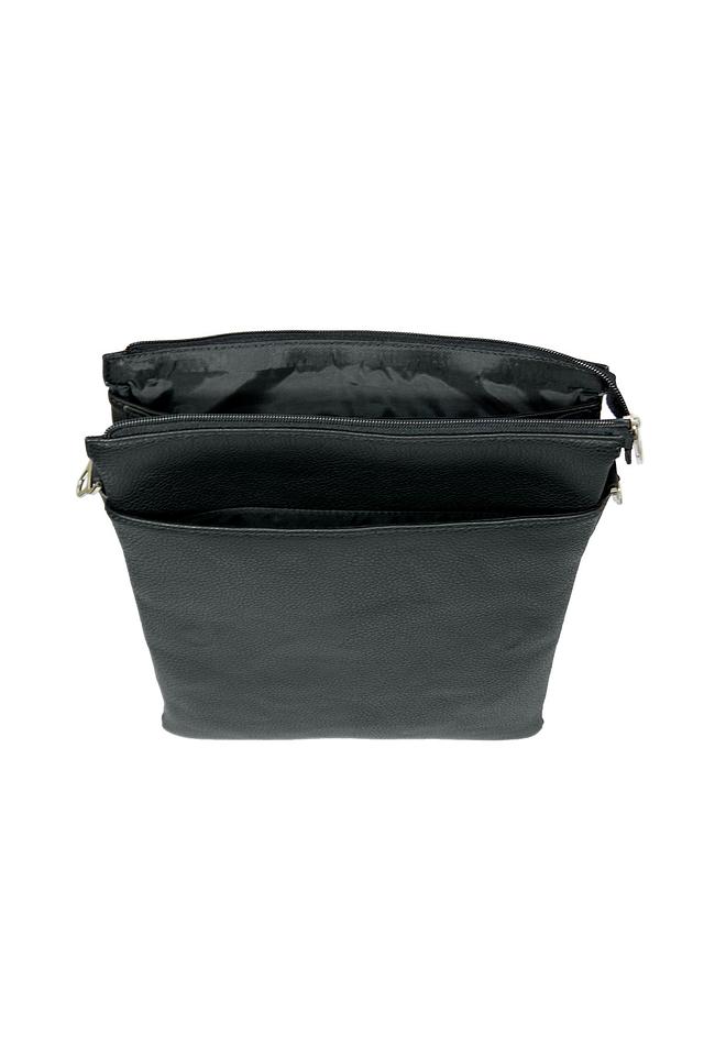 Модель оснащена регулируемым плечевым ремнём, что позволяет носить её комфортно через плечо или на груди. Внутри сумки предусмотрено достаточно места для хранения необходимых вещей, таких как телефон, кошелёк, ключи и документы. Застёжка на молнии обеспечивает сохранность содержимого.