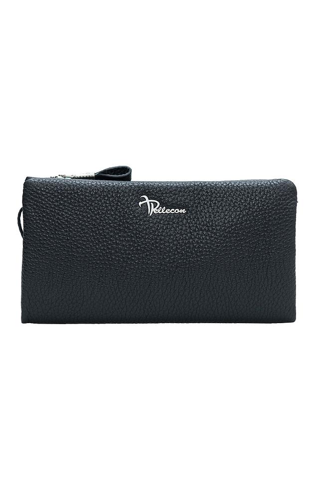 Клатч оснащён надёжной молнией, которая обеспечивает сохранность содержимого. На лицевой стороне клатча расположен логотип бренда Pellecon, а также декоративная металлическая деталь. Кожа имеет текстурированную поверхность.