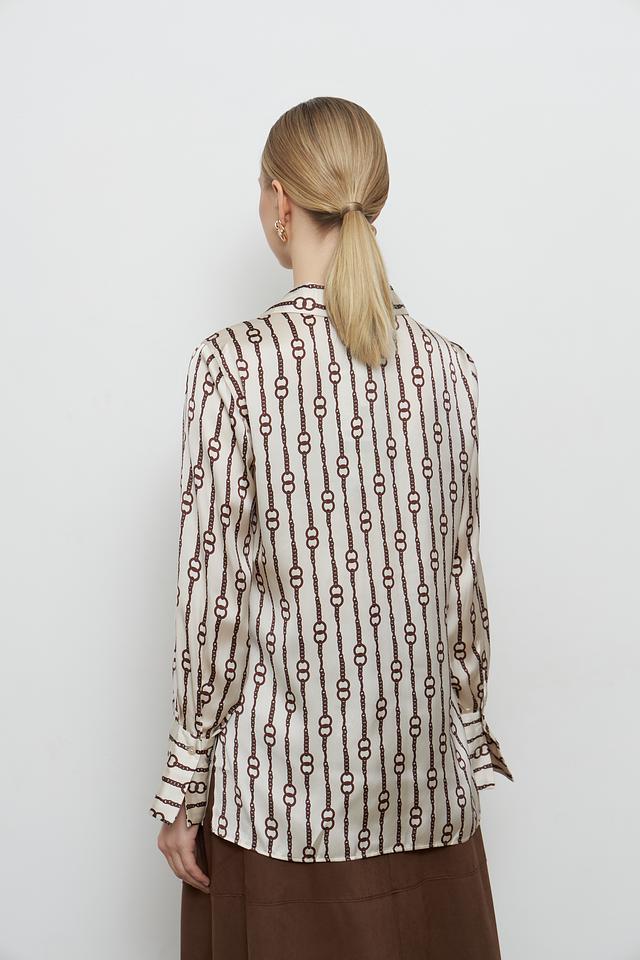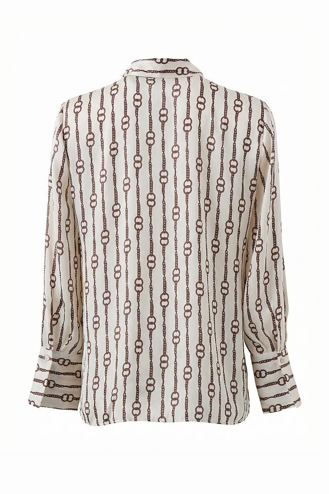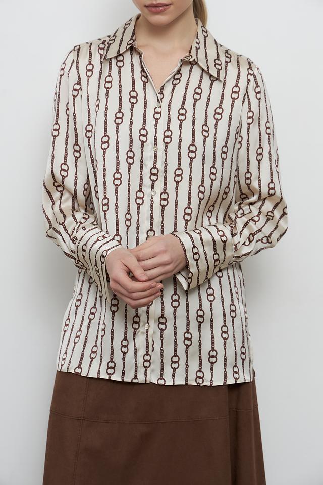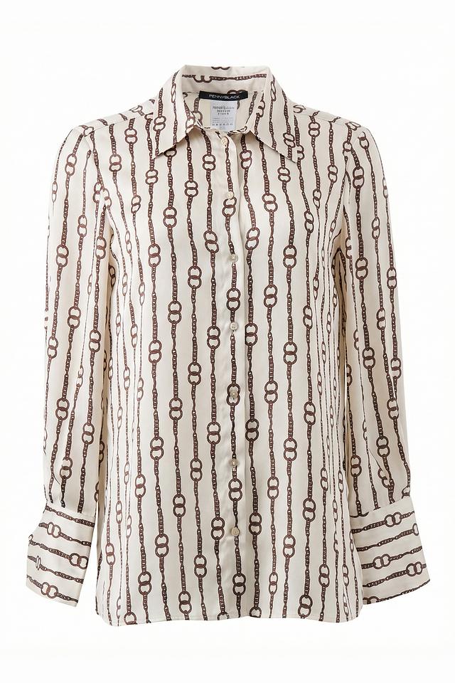 Эта блуза от Penny Black станет прекрасным дополнением к вашему гардеробу. Она выполнена в нежном бежевом цвете и украшена стильным принтом, имитирующим цепочки.