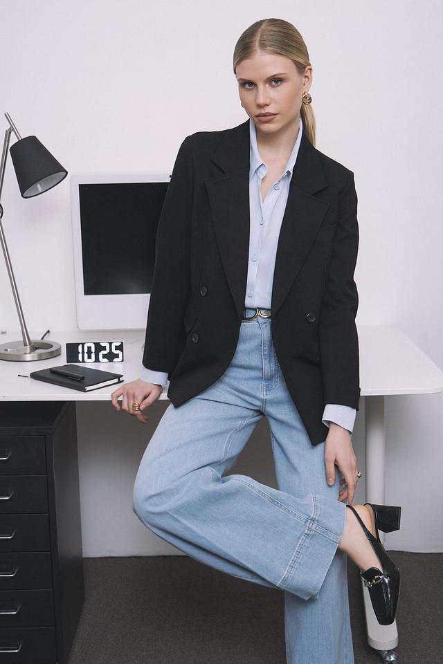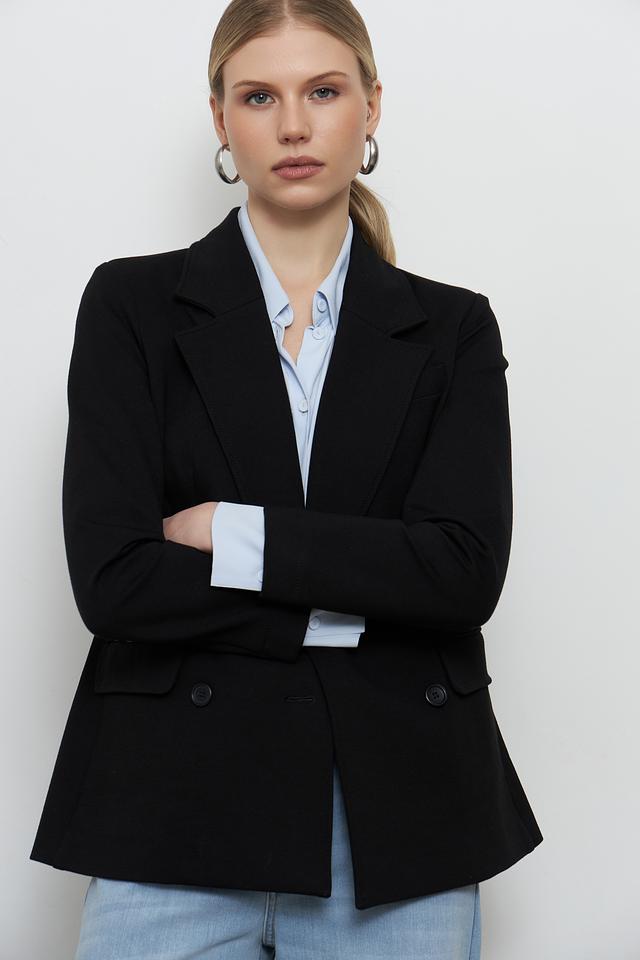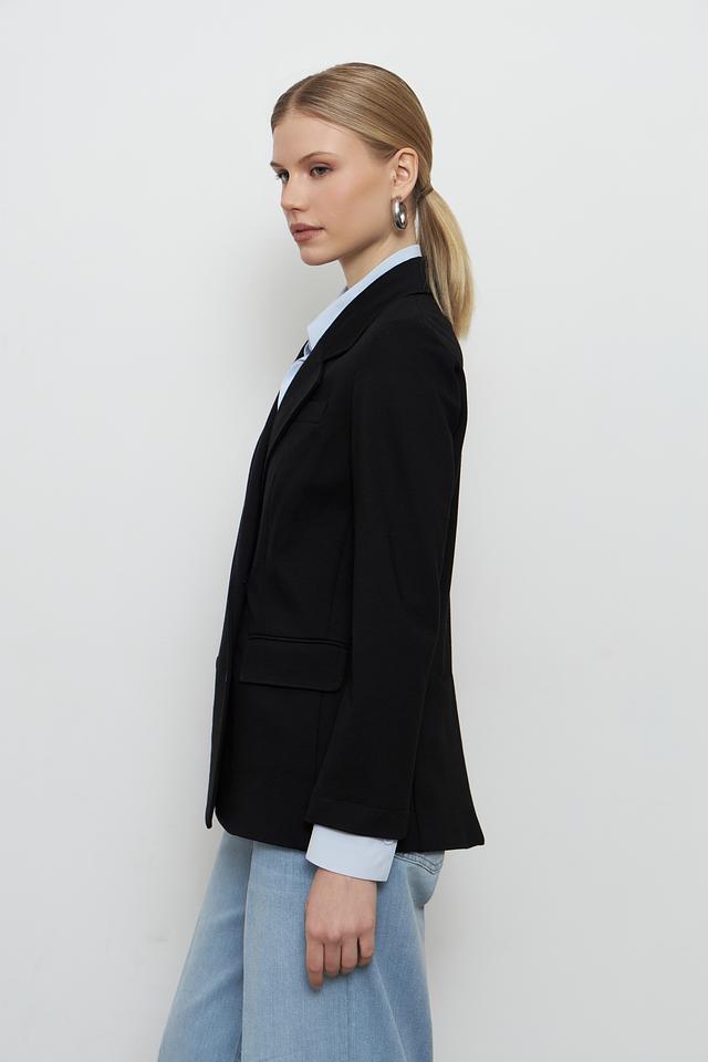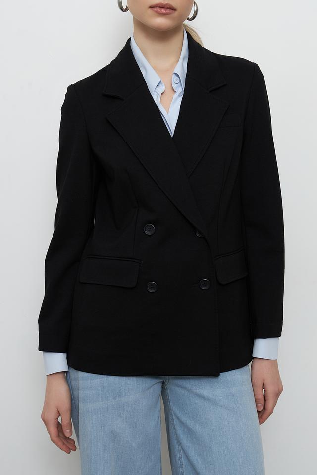 Этот жакет от Penny Black Black выполнен в классическом черном цвете и станет отличным дополнением к вашему гардеробу. Жакет имеет двубортную застежку, которая придает ему более строгий и формальный вид.
