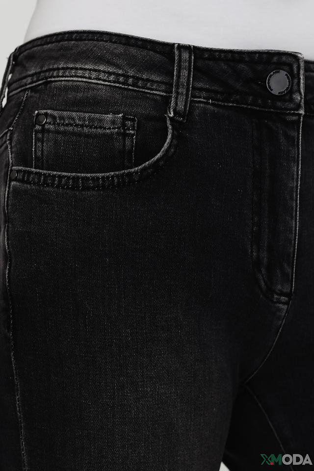 Джинсы имеют завышенную талию, которая подчеркивает фигуру и обеспечивает комфортную посадку. Прямой укороченный силуэт делает их универсальными и подходящими для создания различных образов. Классическое оформление карманов и аккуратные швы добавляют им элегантности.