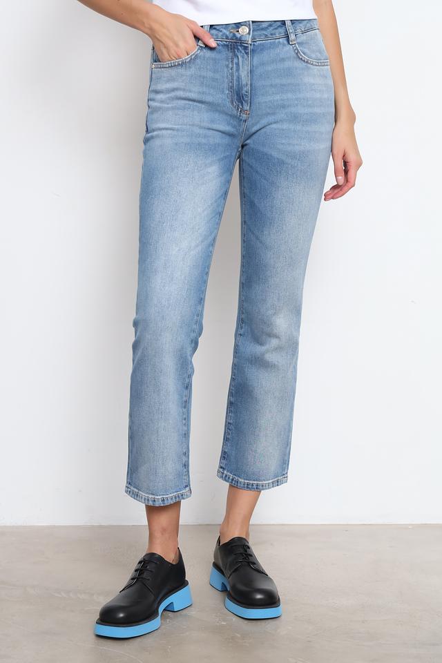 Крой джинсов – прямой, укороченный, что делает их идеальным выбором для создания модных и стильных образов. Ткань состоит из 99% хлопка и 1% эластана, что обеспечивает мягкость, удобство и небольшую эластичность.