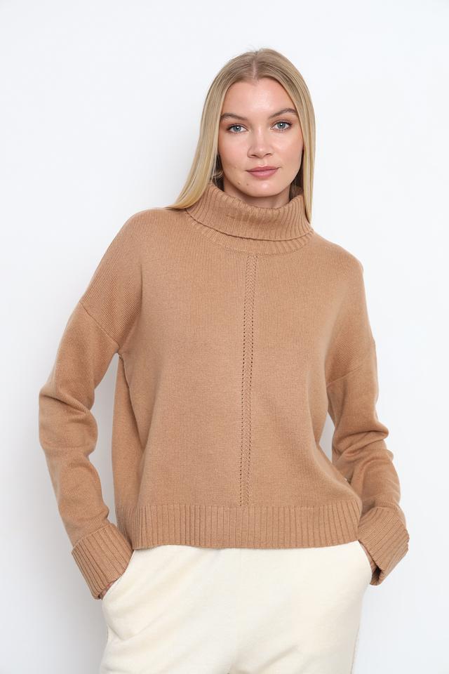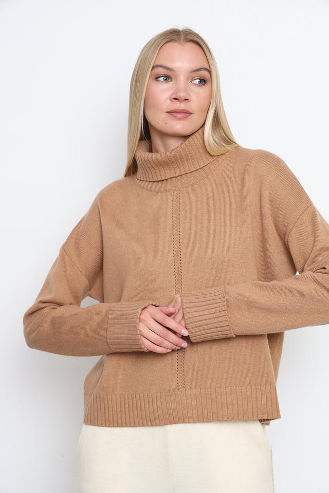 Бежевый джемпер Penny Black с высоким горлом и декоративной вставкой. Изготовлен из мягкой смеси шерсти, вискозы, нейлона и кашемира, обеспечивающей комфорт и тепло. Стильный и универсальный выбор для создания повседневных образов. Состав: нейлон 35%, вискоза 31%, шерсть 30%, кашемир 4%