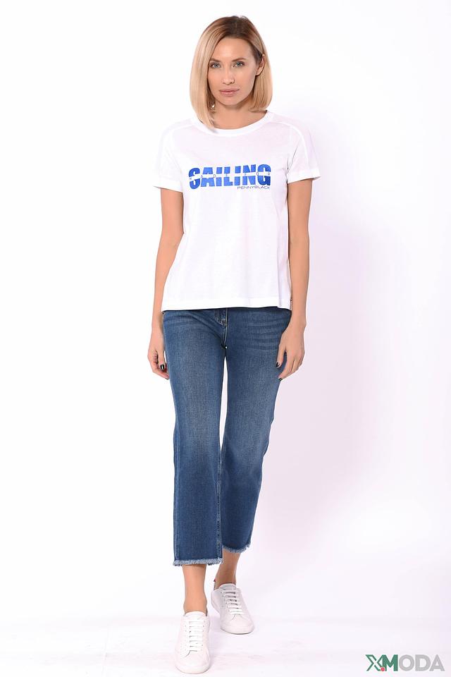 Белая футболка Penny Black Grey с ярким синим принтом "SAILING CHILLING". Изготовлена из мягкого хлопка, обеспечивающего комфорт в повседневной носке. Стильный и лаконичный дизайн. Состав: хлопок 100%, Состав_2 вискоза 100%