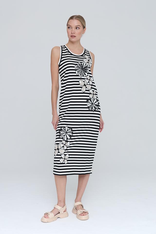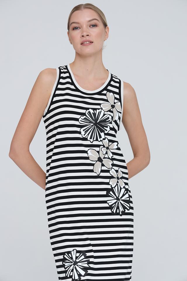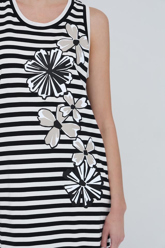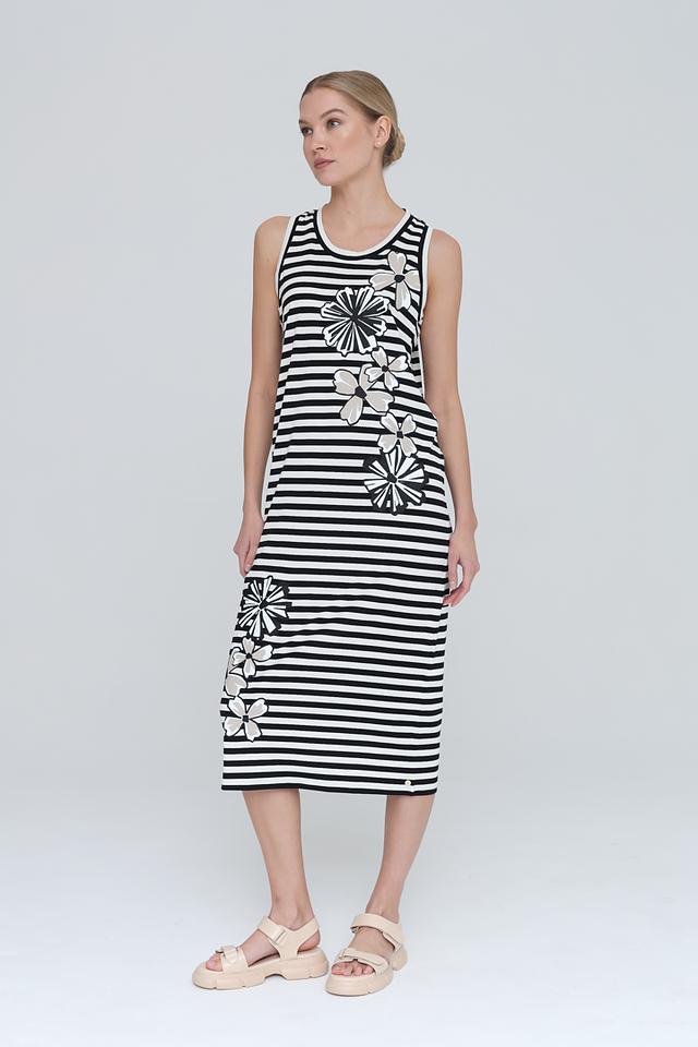 Это платье от Penny Black – идеальное сочетание комфорта и стиля. Модель выполнена в классической расцветке: черные и белые полосы создают универсальный фон для яркого цветочного принта.