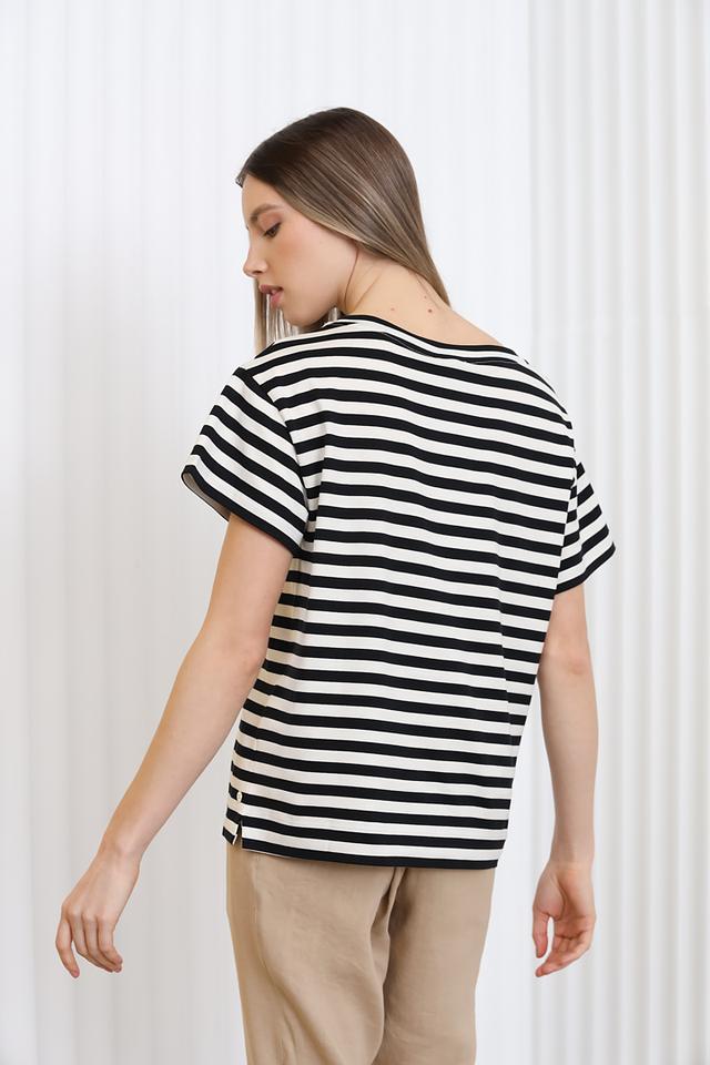 Эта стильная футболка от Penny Black станет прекрасным выбором для создания повседневного образа. Модель выполнена в классическом чёрно-белом цвете с горизонтальной полоской.