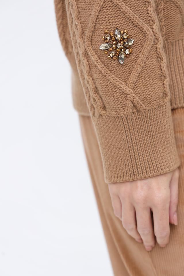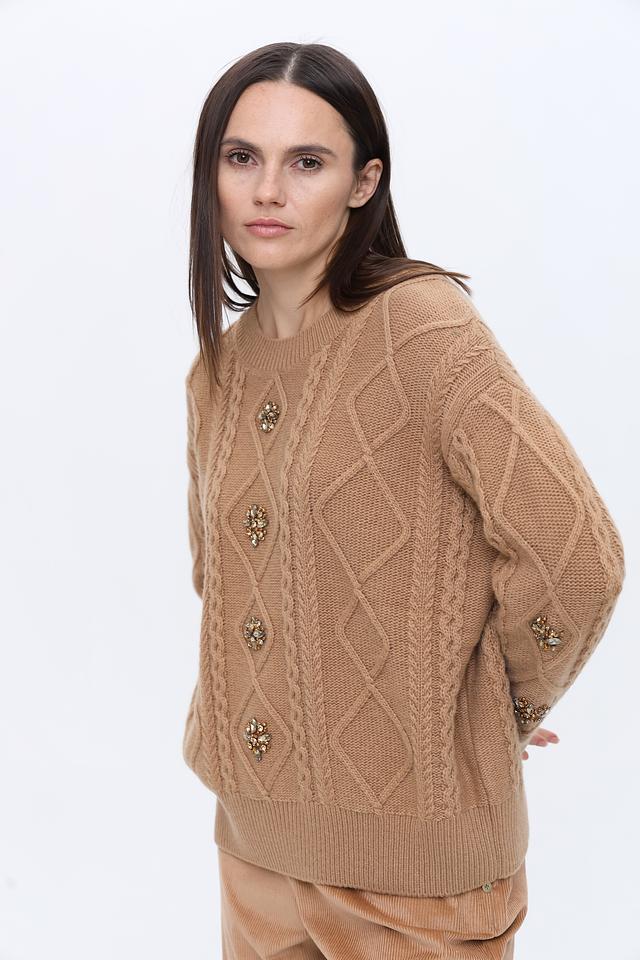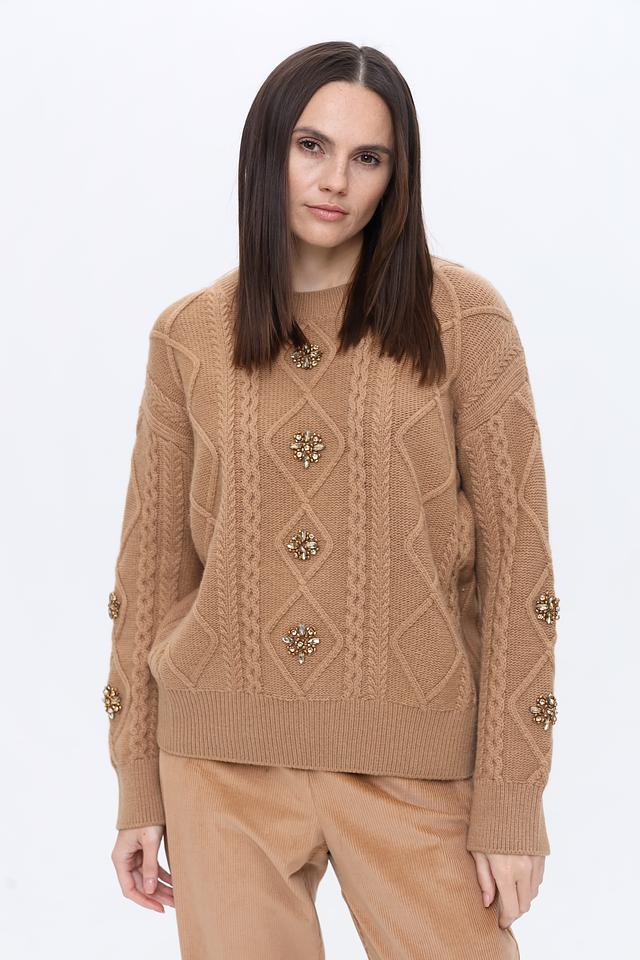 Джемпер выполнен из высококачественной смеси шерсти (50%) и нейлона (50%), что делает его мягким, теплым и износостойким. Декоративные элементы в виде аппликаций из страз придают изделию изысканность и оригинальность.
